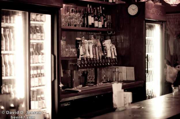 The second we walked in the door, I knew this was an unexpected discovery. There were much more than a few good beers on tap. They had 14 craft beers on tap plus Guinness and, like bookends for the taps, were two large refrigerators packed with bottles of craft beer. When I asked about the number of different bottles, the estimate was over 250. Not only do they have the bottles in the fridge but also bottles under the bar and some in the basement and all of the bottles are stored properly, cold.
